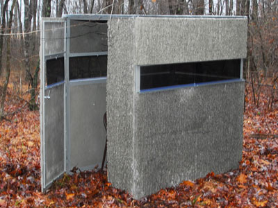 The Lightweight is designed primarily for ground blind use but may also be elevated. Unique to Outer Armor blinds, this model comes in a kit to be assembled by the buyer. Overall weight is approximately 230 pounds. The panels are 1” thick with an R value of 5. The blind comes with a full door and flip down 1/8” Plexiglas windows on all four sides. This blind is designed as an affordable option for the budget conscious hunter who wants a quality deer blind. Interior dimensions are 44” wide by 68” deep by 71” high.